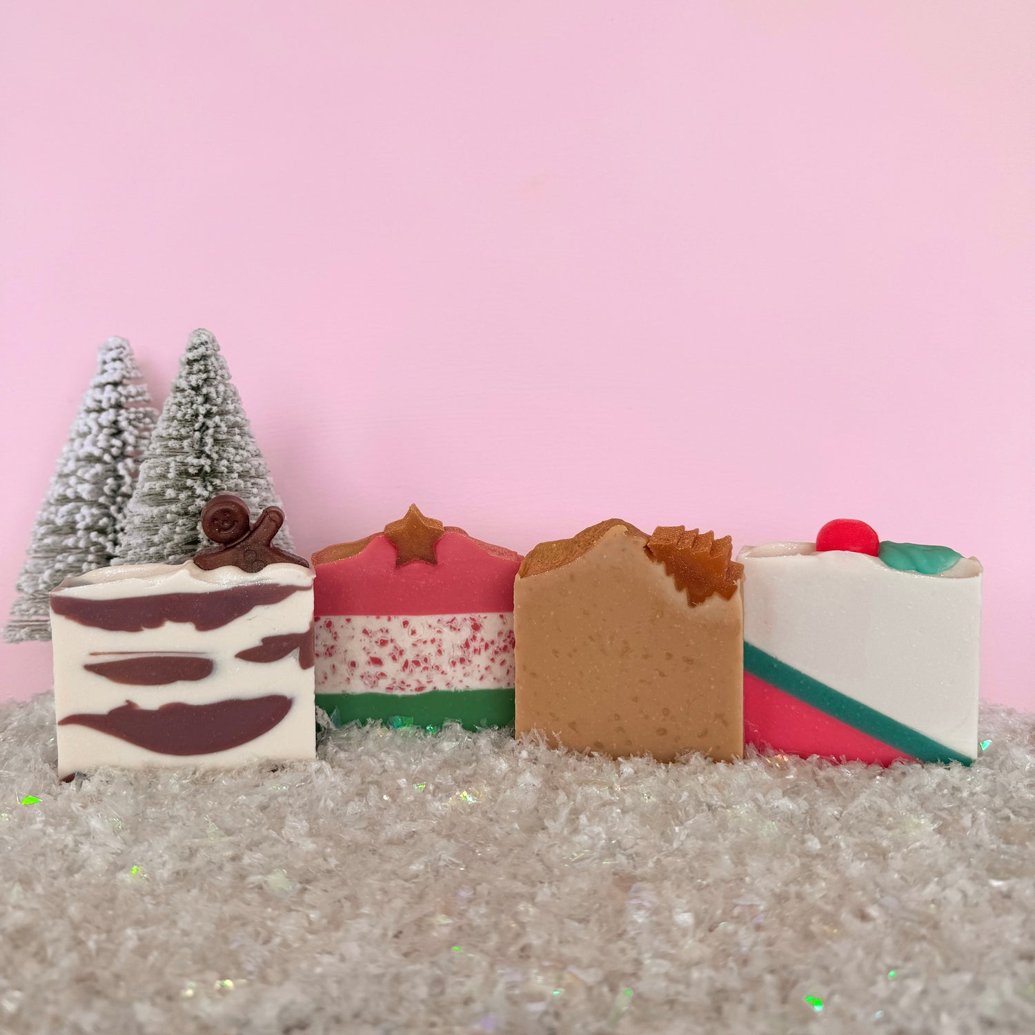 Four festive artisan soaps + Snowflakes & Cashmere shower gel & body cream
